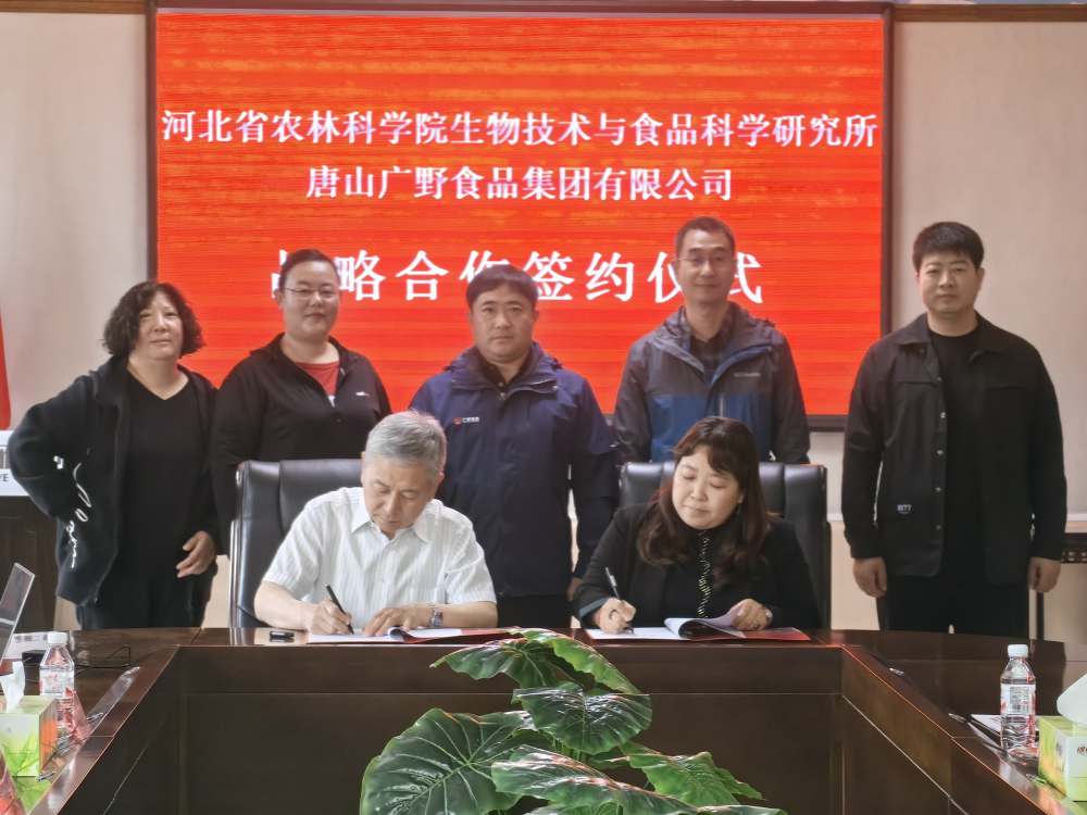 张彩虹董事长介绍了目前企业的生产规模、经营现状、研发进展和技术需求;关军锋研究员阐述了生物与食品所在产品研发、农作物种质创新、基地建设、科技服务、人才培养的优势;刘敬科研究员就生物与食品所在果蔬及粮油加工的基础研究、农产品加工提质增效、科研平台建设等方面进行了重点说明。双方就下一步产品升级、新产品研发、平台共享等合作签订战略合作协议。