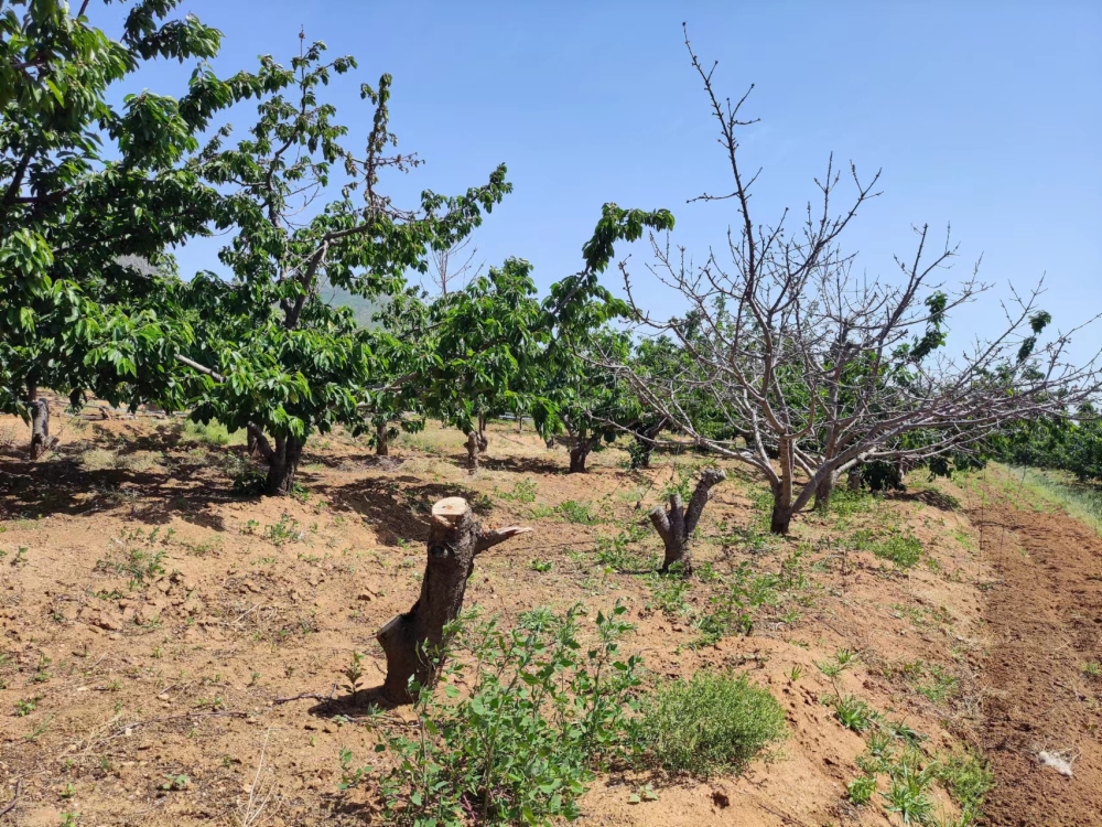 桃红颈天牛是甜樱桃上的主要枝干害虫。由于在生产中被忽视防治,往往造成树体部分主枝或整株死亡,并有发展加重的趋势,给果农带来巨大的经济损失。但由于红颈天牛危害主要以幼虫在树干内蛀食为害,往往多头不同龄期的幼虫同时向木质部深层蛀食危害,早期不易被发现,一旦发现有虫粪排出时,就已经造成严重危害,因此及时发现与治疗至关重要。