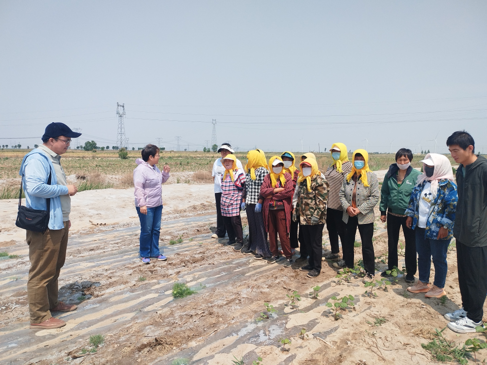 为了更好的落实“三区”项目, 5月30日,棉花所分子育种研究室一行4人前往海兴县国营海兴农场六队,就棉花苗期遭遇多雨、低温极端天气而出现的烂根、死苗等问题进行技术指导,并对棉农提出的棉花苗期田间管理问题进行了耐心解答。此次科技服务活动向棉农传授了棉花苗期管理知识,增强了棉农克服苗期灾害的信心,为当地棉花生产开展提供重要技术支撑。