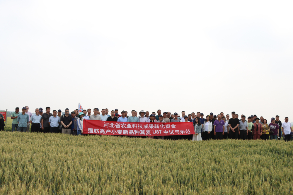 为认真落实 2024 年全院工作会议精神,进一步加强强筋高产小麦品种冀麦U87和冀麦U68的推广示范工作,2024年5月21日,由我院粮油所主办,柏乡县农业农村局和河北广骁农业科技有限公司协办的“强筋高产小麦新品种冀田间观摩及测产会”在柏乡县召开。
