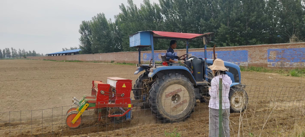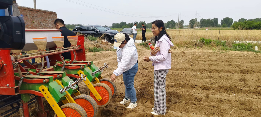 2024年5月29日,粮油所河北省现代农业产业技术体系特色油料创新团队芝麻胡麻选育栽培岗位专家、国家特色油料产业技术体系芝麻石家庄综合试验站站长徐桂真研究员及其团队成员到大名县孙甘店镇南李庄村开展芝麻百亩高产示范田的精量播种技术指导。本团队提供了芝麻专用的精量播种机,为适应配套的中耕培土除草机,实现芝麻全程机械化生产,采用宽窄行种植模式,设置宽行58cm,窄行24cm,对播种机进行了调试,进行足墒播种。每小时播种8亩,是人工播种效率的57倍,减少劳动力和种子、农药、化肥等农资的投入,而且种子均匀分布,播种深度一致,在播种环节实现了机械化全自动化,也为田间管理和收获环节实现机械化奠定基础。
