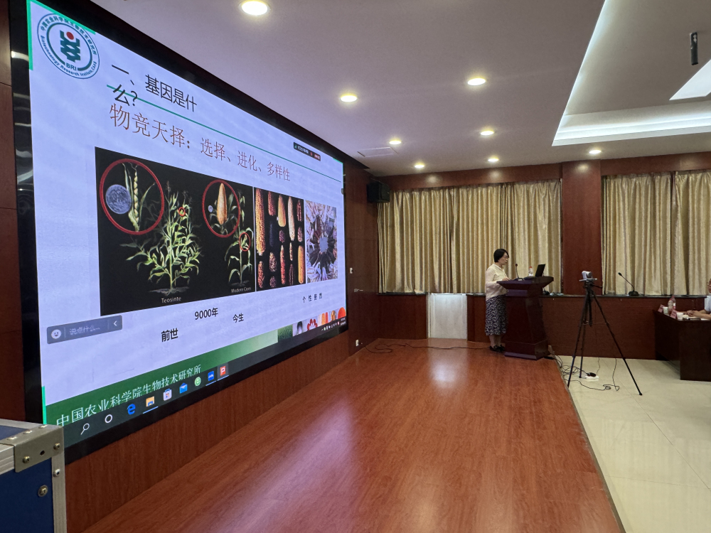 活动邀请了中国农业科学院生物技术研究所陈茹梅研究员授课。陈茹梅研究员系统讲述了作物转基因的背景和意义、相关基础知识、转基因作物的管理及安全评价、国内外作物转基因育种研究和产业化现状、基因编辑和合成生物学发展前景等内容;并介绍了她所从事的科研工作进展,包括利用生物育种创制的高植酸酶和高虾青素玉米种质;最后,还深入解读了转基因相关的政策方针,为河北省做好转基因相关工作提供了理论指导。课堂上,陈茹梅研究员与参会者进行深入交流,结合大家感兴趣的转基因热点问题答疑解惑,现场气氛活跃,台上台下互动连连,引得掌声阵阵。会场还展示了有关转基因知识、玉米赤霉烯酮的危害、玉米的营养价值、应用及用途等科普展板,丰富了活动内容。