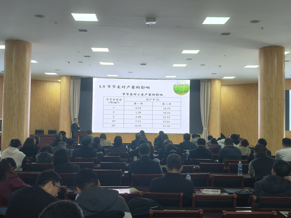 参会代表首先对2025年邢台市小麦、玉米、蔬菜等主要农作物病虫害发生趋势进行了充分分析和探讨,制定了防控预案,为全年有效控制病虫草危害奠定了良好基础。随后,袁立兵研究员以“小麦主要病虫草害防控技术”为题开展技术培训,讲解了小麦田主要病虫草害的发生特点及防治技术,其中,重点针对邢台地区近年来造成严重危害的麦田抗性杂草大穗看麦娘,详细介绍了其抗性现状和危害、植保所最新研发的防控技术,展示了防控效果。通过本次培训,提高了基层技术人员和种植户有效控制抗性杂草大穗看麦娘等主要病虫草害的信心和能力,为邢台市小麦单产提升行动提供了良好的技术支撑。