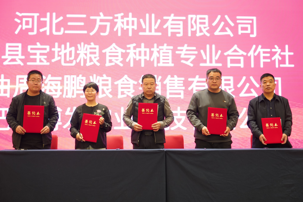 粮贸企业代表表示,冀麦系列优质小麦是目前国内一类优质小麦品种的新秀,应加大其种植力度,以满足加工需求,并使其成为专用面粉的主要粮源。另外,多家种业公司与企业现场签定战略合作协议,持续加强粮食订单发展模式的合作,并在会议现场订购冀麦系列优质小麦7650吨。