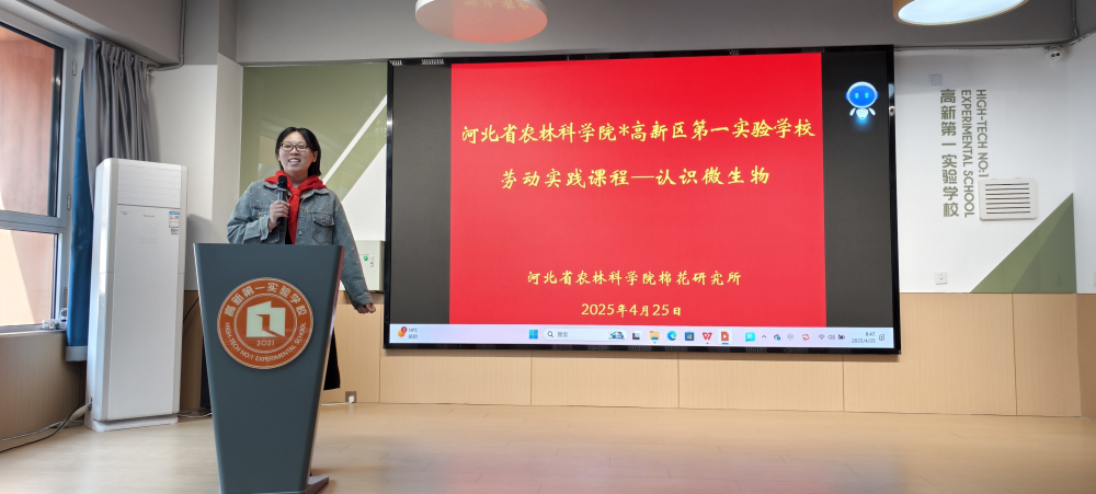 2025年4月25日,棉花所应邀参加石家庄高新技术开发区第一实验学校“一亩三分地”农场开耕仪式暨“河北省农林科学院棉花研究所劳动教育实践基地”春播仪式,棉花所相关负责同志、科技人员和第一实验学校校长、师生100余人参加活动。