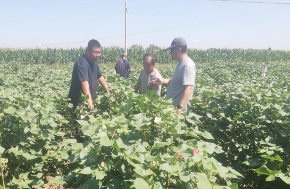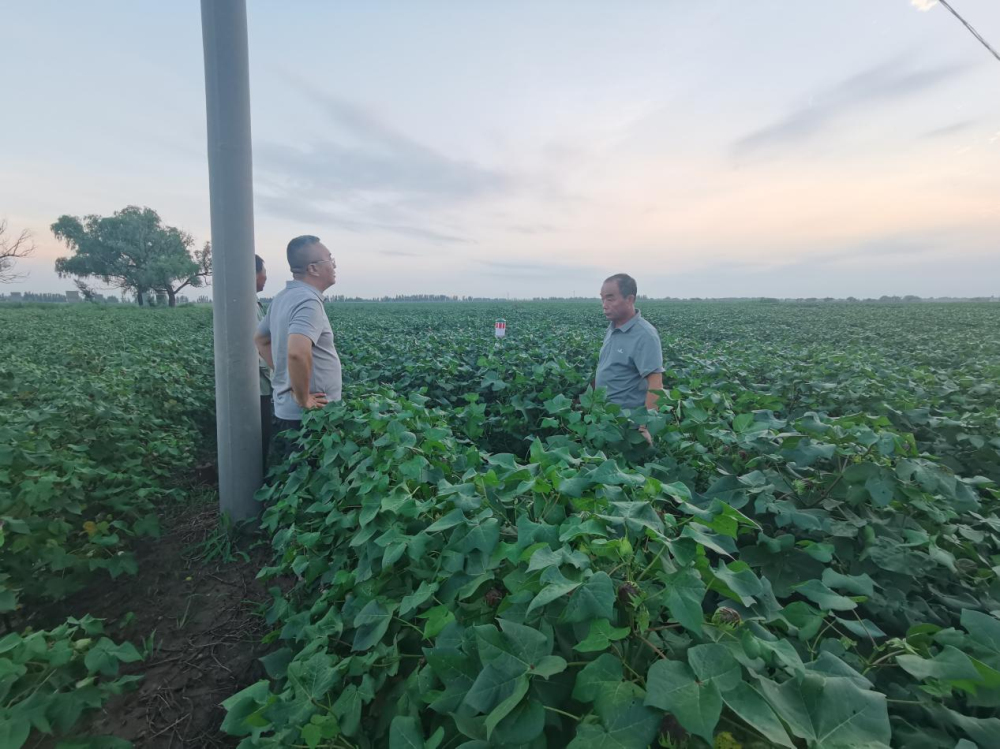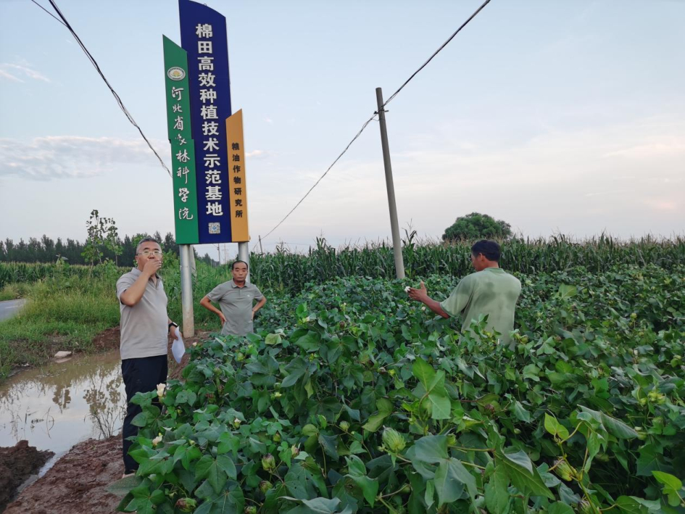 现阶段正值棉花中后期管理的关键时期,雨后易出现蕾铃大量脱落和病虫害暴发的情况。近日,沧州局部地区出现强降雨,8月10日和22日,粮油所棉花育种研究室副主任王士杰和贾晓昀赴沧州献县广顺种植专业合作社示范基地开展雨后应急技术服务。