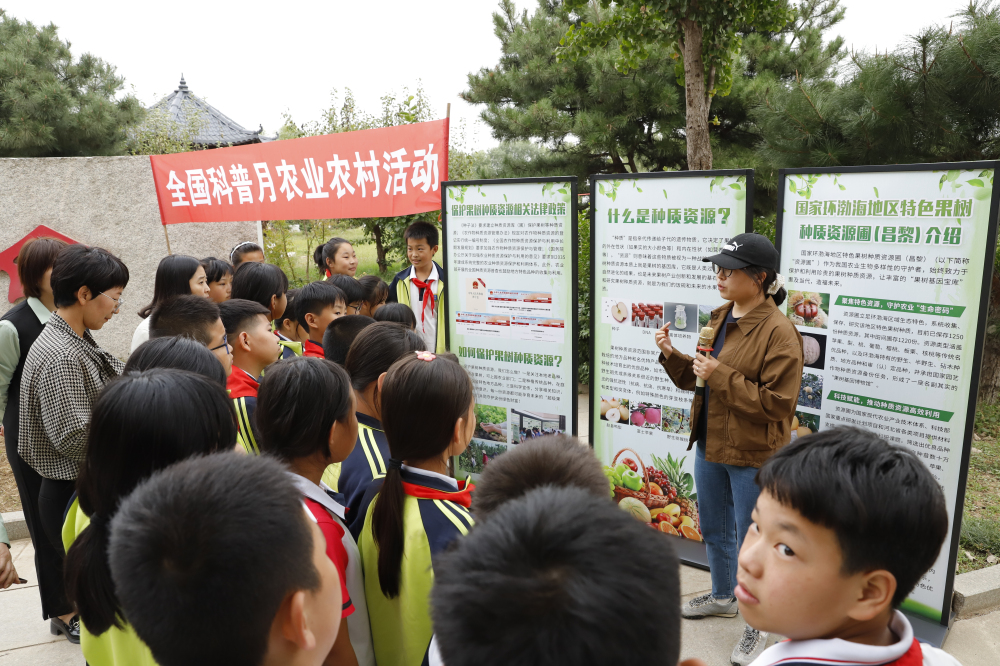 为庆祝2025年中国农民丰收节,展示农作物种质资源保护与利用成效,提高公众对种质资源保护与利用意识,2025年9月19-23日,国家环渤海地区特色果树种质资源圃(昌黎)联合国家葡萄产业技术体系砧木评价与改良岗、国家苹果、桃、梨产业技术体系昌黎综合试验站、省产业技术体系干果、葡萄、苹果和梨创新团队举办2025年“种质资源科普开放日”主题活动。