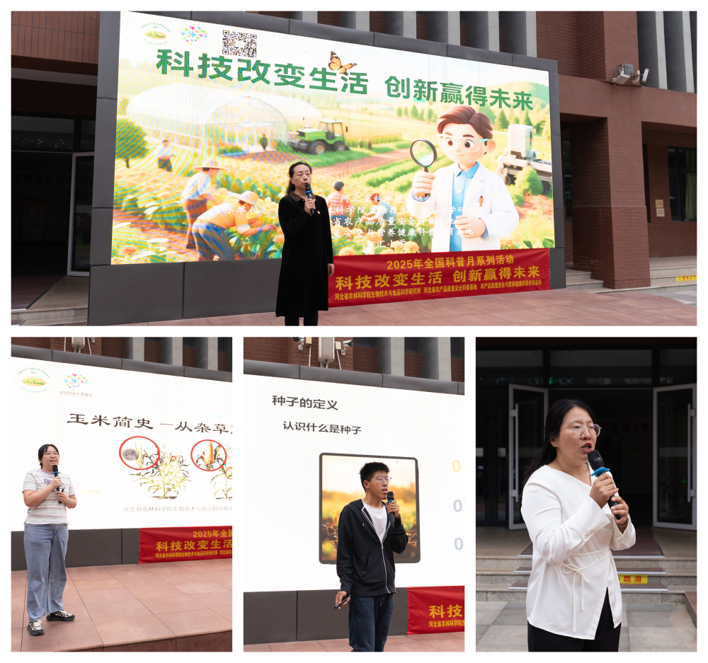 2025全国科普月期间,为进一步弘扬科学知识,点亮学子科学梦,2025年9月26日,生物与食品所的科普团队成员马春红、朱金永、赵璞、许大金走进石家庄智汇小学,以“科技改变生活 创新赢得未来”为主题,为该校师生带来了一场为“播下科学种子,守护成长未来”的趣味农业科普盛宴,为青少年打开了探索科技奥秘的大门。智汇小学师生共计900余人参与活动。