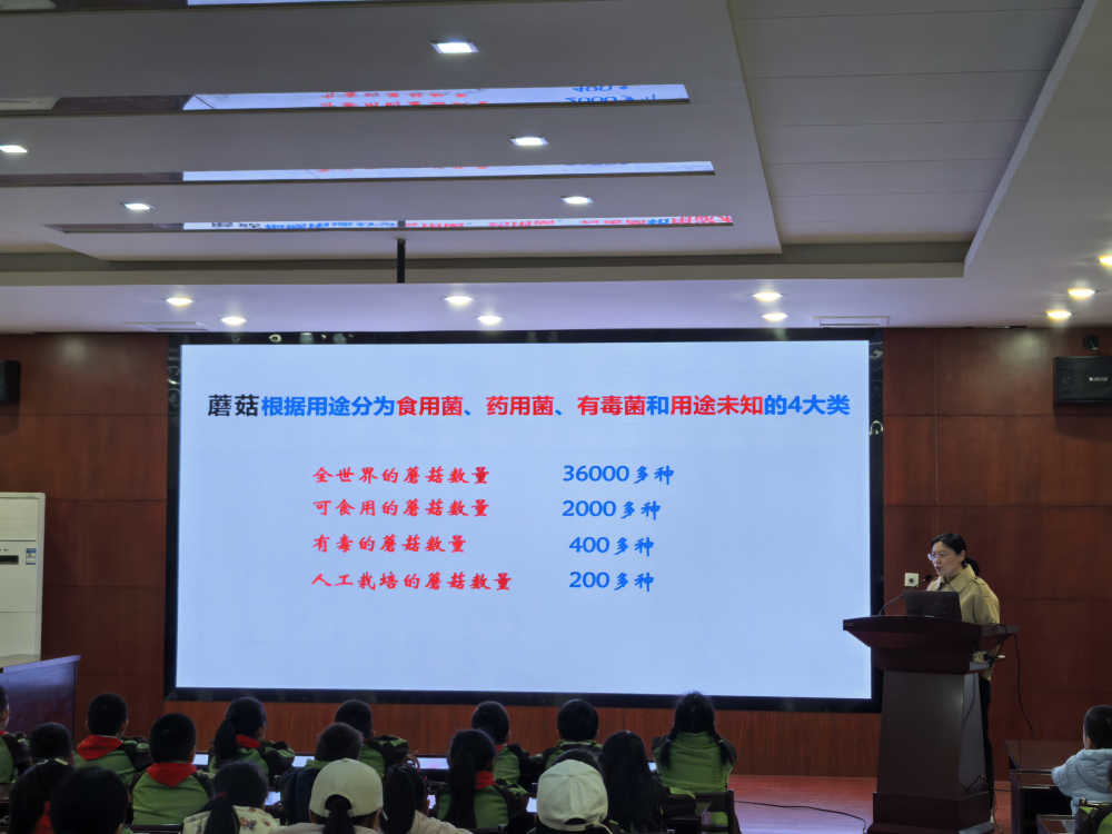活动首先由经作所食用菌室主任、石家庄站站长李慧用一场生动有趣的科普讲座拉开序幕。李慧从蘑菇的分类、营养价值到栽培过程,通过丰富的图片和实例,向大家展示了食用菌的相关知识,激发了学生们对食用菌的浓厚兴趣。互动环节中,学生们积极提问,现场气氛十分活跃。