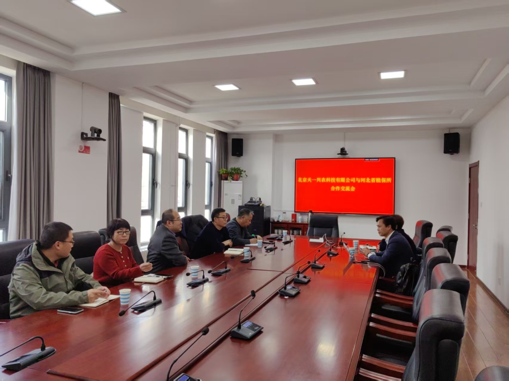 为推进科技成果转化、加强科技服务对接,2026年1月9日,植保所邀请北京天一兴农科技有限公司詹礼陵总经理一行来访,植保所所长郭庆港出席座谈,杀菌剂、杀虫剂、除草剂及植物生长调节剂等相关药效试验负责人参会。