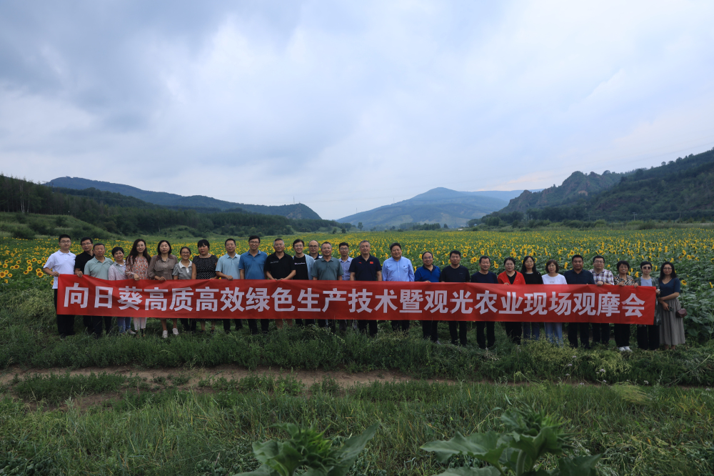 2023年以来,向日葵团队依据冀北地区的生态特点,以油用向日葵新品种为依托,不断优化创新配套栽培技术、引进新型农机装备,集成创新并示范推广了从品种筛选、土地深耕、地膜覆盖、精量播种、水肥一体、绿色防控、赏花观光、机械采收到精品加工的一套完整的绿色高效生产技术,通过轻简化管理程序、提高防控效果、增加水肥利用率、提升产品质量、创建优美场景,实现了集省工省力、减肥减药、精品生产、观光旅游于一体绿色高效生产。