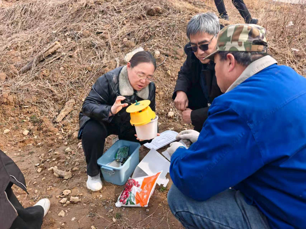 在现场指导环节,专家们针对园区目前生产中的关键问题逐一施策。针对樱桃树修剪不合理问题,陈龙主任采取现场示范、讲解对技术人员进行了培训,同时分享了花期防冻、精准施肥等实用技术,助力提升樱桃种植管理水平;韩斌研究员结合自主选育品种的栽培经验,现场讲解了架式选择与修剪技术,为优质葡萄标准化种植提供技术支撑;张朝红研究员针对苹果的修剪与拉枝问题进行现场指导,破解种植管理瓶颈;李永红研究员查看了桃苗的定植情况,结合苗木生长状态,为目前的管理工作制定详细方案;吴雅琴研究员重点指导了病虫害绿色防控技术,现场开展了梨小食心虫的智能监控、绿盲蝽诱集与监控相关工作,为园区病虫害及时、科学防控提供可靠依据。