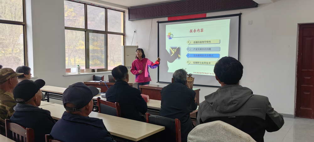 元氏县黑水河乡地处太行山中南部东麓,地貌类型为山区、丘陵,山场资源丰富,适合连翘生态栽培。近几年连翘种植面积逐年快速增加,但目前人工种植品种混杂、栽培技术落后,导致经济效益低。此次培训正值连翘开花盛期,精准对接种植户生产需求,聚焦连翘生态栽培的关键技术要点展开授课。及华研究员结合当地连翘种植实际,围绕冬季修剪打造高产树形、花期授粉、种植模式等核心技术进行细致讲解,将种植原则总结为“三不一剪”口诀,让种植户易懂易记。同时,针对连翘修剪中冬季整形、夏季促花的关键步骤,逐一拆解操作要点,明确不同时期的修剪标准,以及老化结果枝、衰退主枝的更新方法,强调光照对花芽分化的重要性,让种植户掌握科学修剪的核心逻辑,并提出了“不与农田抢地、不与虫草为敌”的生态理念。