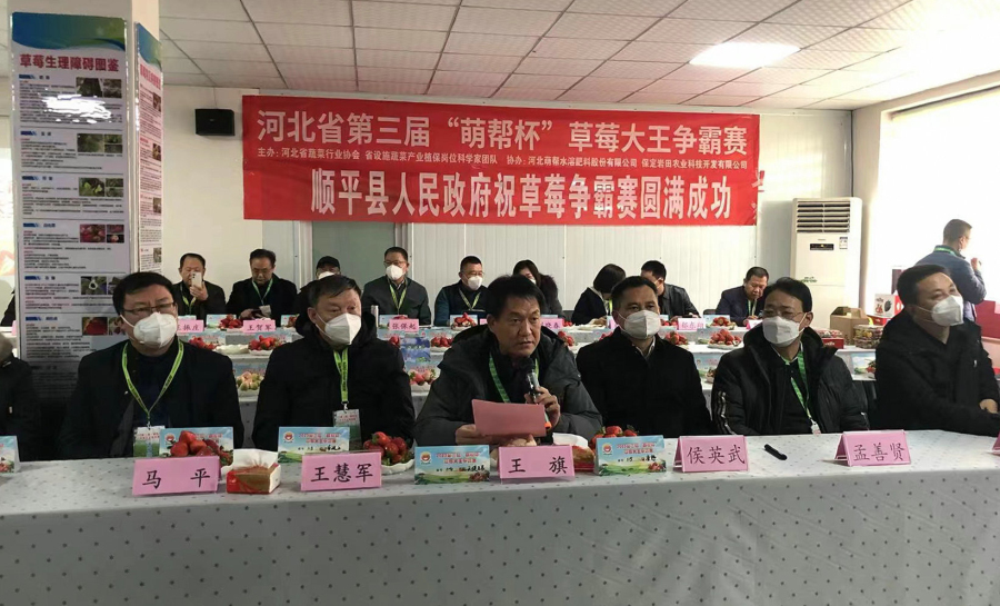 2023年1月7日,第三届“萌帮杯”草莓大王争霸赛在顺平县召开。此次大赛由我院植保所与河北省蔬菜协会、河北省设施蔬菜产业体系、国家特菜体系草莓试验站联合举办。河北省农业农村厅二级巡视员王旗、我院原院长、省智库专家农业组组长王慧军、植保所所长马平,省内相关专家及当地政府领导出席会议,来自顺平、满城、衡水、丰南、正定等13个县区33个合作社参加了比赛。