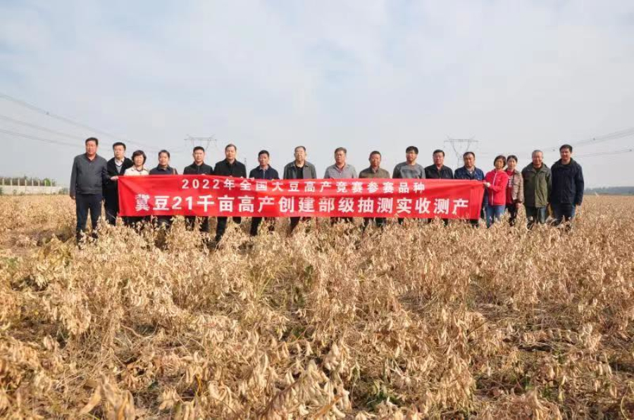 近日,农业农村部种植业管理司发布了《关于2022年全国大豆高产竞赛情况的通报》,由我院粮油作物研究所大豆中心、石家庄市藁城区农业农村局、华丰种业和种植户共同打造的石家庄市藁城区3500亩冀豆21高产田以亩产340.6公斤好成绩获得夏播净作组“金豆王”称号。