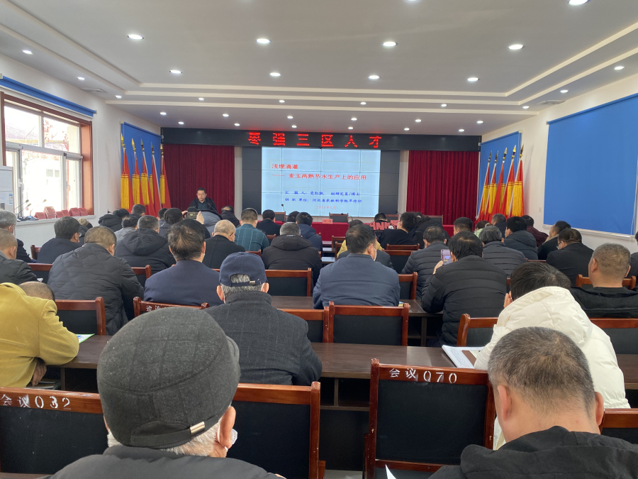 正月初十,应枣强县邀请,旱作所节水技术专家赴枣强县张秀屯镇开展浅埋滴灌关键技术培训,枣强县农业农村局、张秀屯镇相关负责人及示范区种植大户50余人参加培训。 培训会上,授课专家分析了枣强县麦玉两熟种植的生态条件,介绍了浅埋滴灌省水、省肥、省工、省地、增产、增效的优点,同时就目前生产上开展的麦玉两熟“一带两用”技术注意事项做了详细讲解。本次培训,让该县示范区种植户对浅埋滴灌技术有了更深入认识,为全县落实好浅埋滴灌提供了技术支持。