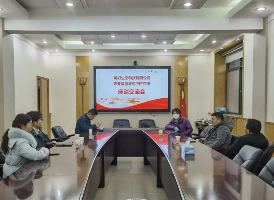 “莓好”送祝福,新年开新局。告别辛勤耕耘、满载收获的旧岁,带着“莓好”希望踏进新征程。2023年2月8日张家口崇礼莓好生态科技有限公司程俊江董事长一行专程来我院信息与经济所,对研究所精准农业研究团队扎根基层,用科技支撑产业,用情怀支撑农业,用行动帮扶农民,为基地发展出谋划策,表示由衷的感谢,并就新一年的企业发展进行研讨。