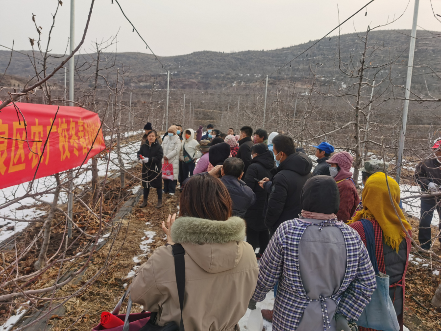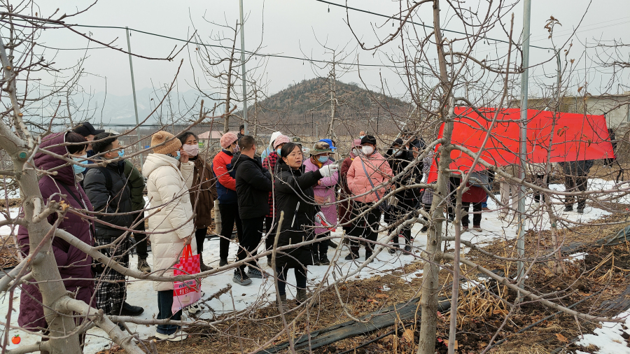 2023年2月15日,石家庄果树研究所苹果栽培研究室杨素苗主任到石家庄市鹿泉区河北大桓渊农业科技有限公司基地为参加“鹿泉区农广校冬春农业科技大培训”的果农开展了苹果春季管理技术培训。
