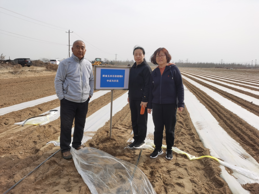 2023年3月16日,生物与食品所种质资源与分子育种研究室副主任马春红研究员、石家庄市农科院玉米室主任刘玉强副研究员、朱彦辉副研究员一行到正定县傅家村对“鲜食玉米石彩甜糯6中试与示范”开展田间种植管理及栽培技术指导与技术服务。