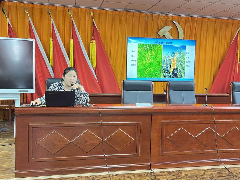 5月18日,河北省农林科学院谷子研究所赵宇副研究员、崔纪菡博士受邀参加了武安市农业农村局主办的2023年谷子产业集群工作推进会,崔博士就河北省优质谷子产业集群建设方案、谷子高产创建路径以及绿色高效种植技术进行了讲解,武安市农业农村局、谷子种植大户、合作社、加工企业等50余人参加了会议。