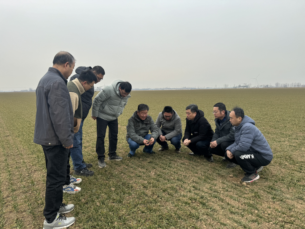 交流结束后,团队一行前往我院河北低平原区粮食作物绿色生产示范基地考察小麦墒情和苗情。旱作所乔文臣副所长及小麦育种研究室成员共同参与田间考察。