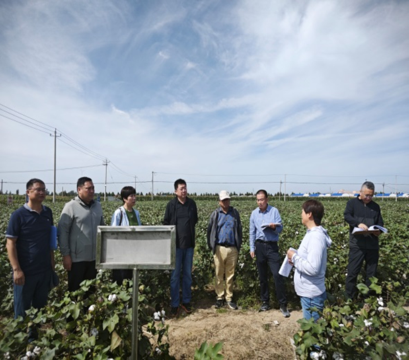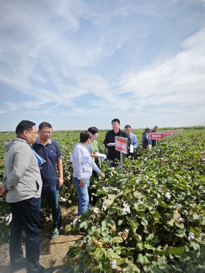2025年9月18日,由省种子总站组织相关专家组成的4人专家组到旱作所考察河北省棉花区域试验。 在旱作节水农业试验站棉花试验田,试验执行人员向专家组汇报了试验实施情况、该点本年度气候特点、各品种出苗生长发育情况及抗性特点。随后专家组对各参试品种田间表现进行了实地考察。专家组对旱作所试点的工作给予了高度评价,认为该试点田间试验设计合理,试验管理及时规范,各品种特性表现明显,能充分体现品种间的差异性,为品种审定提供了科学依据。