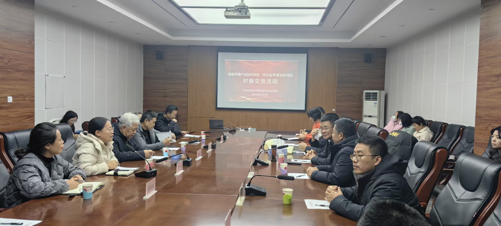 2025年12月9日,石家庄果树研究所邀请陕西省苹果产业技术体系首席专家赵政阳教授、国家苹果产业技术体系遗传改良研究室岗位科学家杨亚州副研究员、河北木美土里科技有限公司董事长刘镇及团队成员一行5人,到所开展交流活动。河北省现代农业产业技术体系苹果创新团队首席专家张建军研究员、石家庄果树所相关负责人、苹果育种、苹果栽培和李杏研究室相关人员陪同,石果所青年科研人员参加交流。
