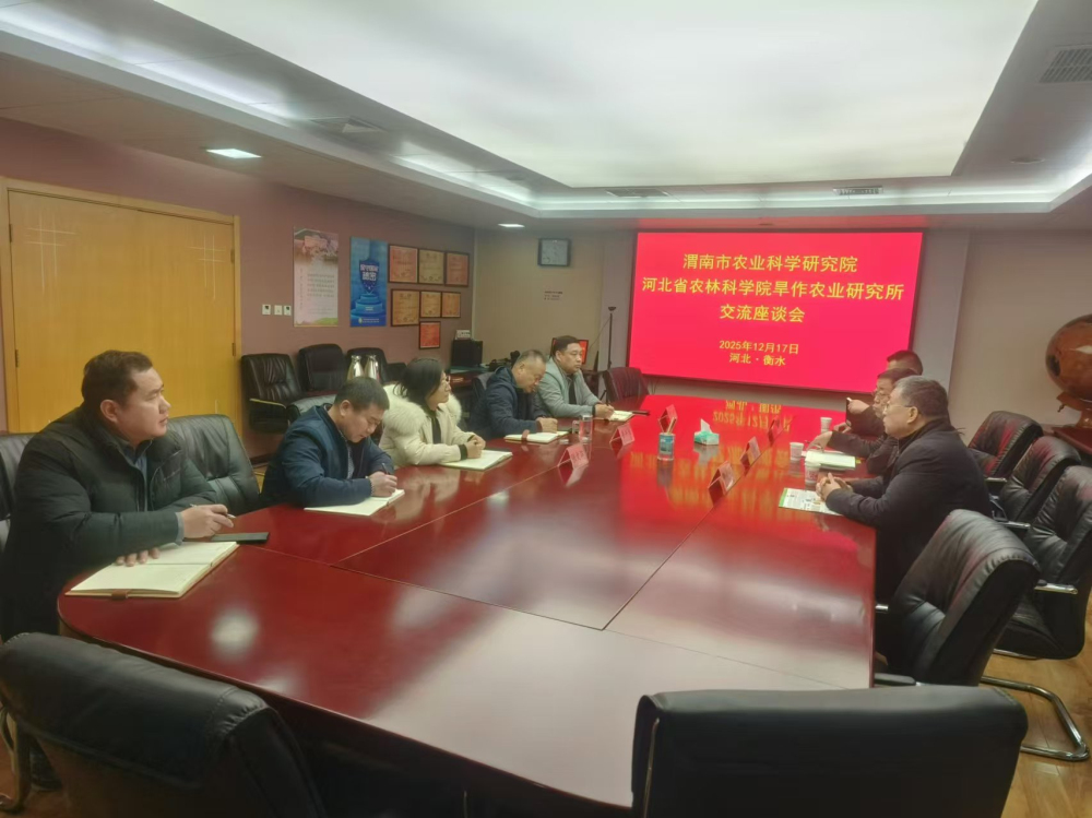 2025年12月17日,渭南市农业科学研究院王杨军院长一行到旱作所进行调研交流,旱作所所长鲁关立、党总支书记李伟及相关科室人员陪同调研。