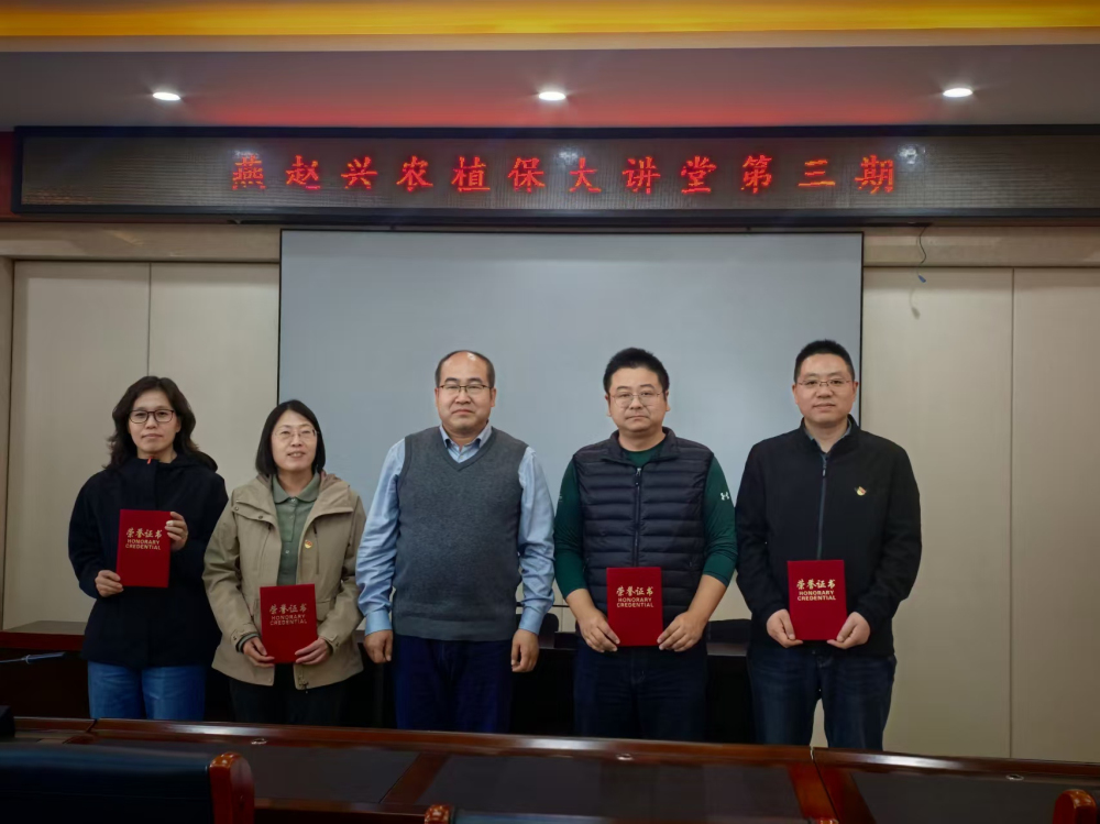 报告结束后,所长郭庆港为四位专家颁发了荣誉证书,对他们的精彩分享与悉心指导表示衷心感谢。他表示,希望以“燕赵兴农植保大讲堂”为契机,持续营造开放共享、互学互鉴的浓厚学术氛围,激发创新思维与研究动力。