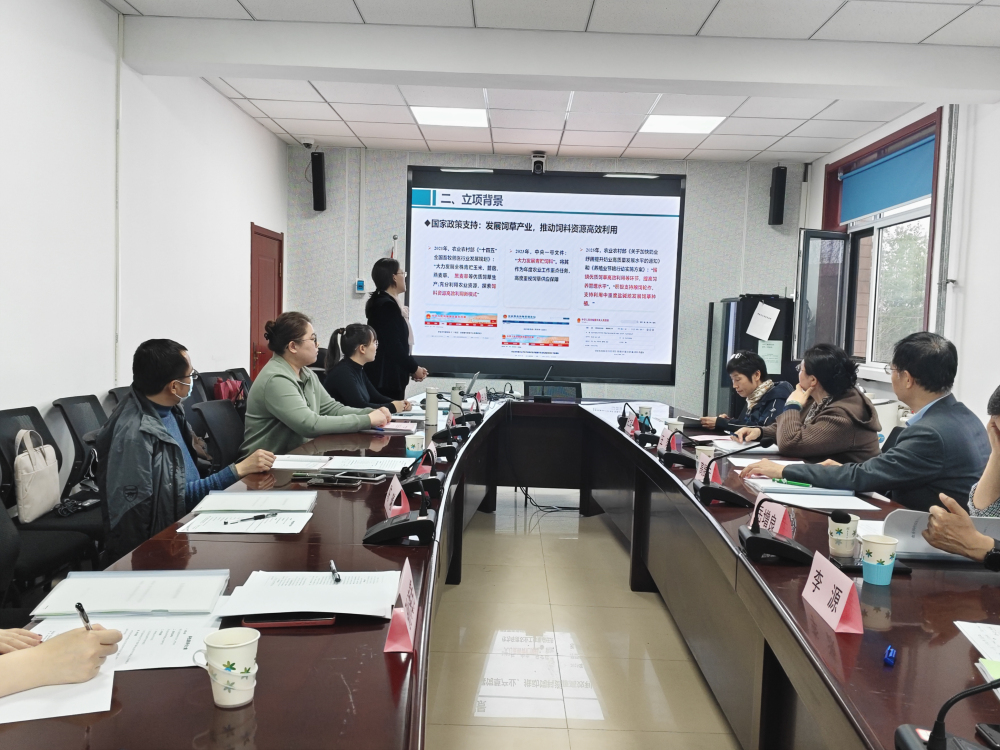 会上,粮油所奶牛研究室主任王昆研究员从研究背景、目的意义、研究方法与技术路线、主要研究成果、技术创新点等方面进行了详细汇报。专家组听取了汇报,审阅了相关资料,经质询讨论,一致认为该成果整体居国内领先水平,其中,饲用小黑麦青贮营养价值精准评价技术达到国际先进水平,推广应用前景广阔。该成果针对奶牛优质粗饲料资源短缺问题,围绕饲料资源开发利用,建立了饲用小黑麦精准评价技术体系,明确了饲用小黑麦营养特性评价,创新构建了“青贮时间—添加剂种类—添加量”协同优化的饲用小黑麦青贮加工调制技术,形成了覆盖不同生理阶段奶牛的饲用小黑麦高效利用技术体系,对推动饲用小黑麦应用,助力养殖业高质量发展具有重要意义。