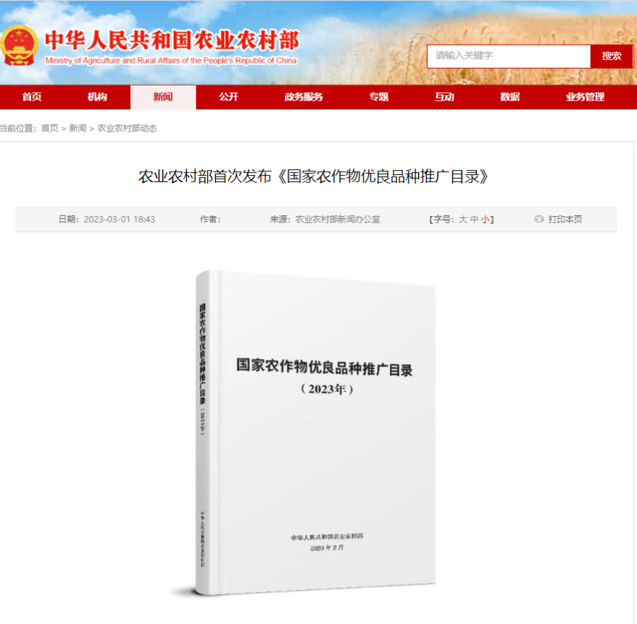 近日,农业农村部首次发布了《国家农作物优良品种推广目录(2023年)》,旨在加快推广应用步伐,促进大面积生产单产水平提升。根据品种试验、展示评价、主要品种推广面积统计和种子企业生产经营等数据,经省级种业管理部门推荐、专家遴选论证,重点推介10种农作物、241个优良品种,粮油所3种农作物、5个优良品种列入其中,包括小麦冀麦765列入苗头品种,大豆冀豆12列入骨干型品种,大豆冀豆17、花生冀花甜1号列入特专型品种,花生冀花19号列入成长型品种。