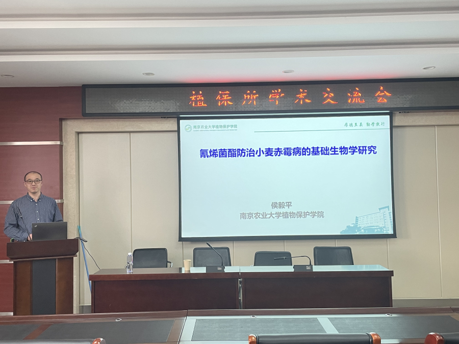 侯毅平教授作了题为“氰烯菌酯防治小麦赤霉病的基础生物学研究”的学术报告,详细讲述了氰烯菌酯生物活性及田间使用技术、分子作用机理和抗性机制、协同复配增效使用技术和抗性分子检测技术等方面的研究进展与成果,同时,将自己承担的国家自然科学基金项目的研究思路和技术路线等内容贯穿其中,与大家分享了项目布局和申报的经验体会。