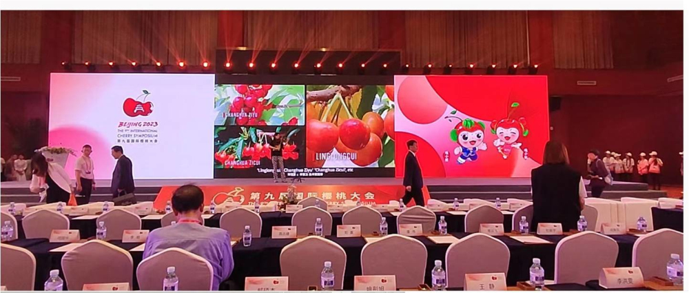 为了推进国际樱桃科研与产业发展,及时交流新品种、新技术、新成果信息,国际园艺学会于2023年5月21日-5月25日在北京召开了第9届国际樱桃学术研讨会。为期5天的会议吸引了来自中国、罗马尼亚、美国、日本、德国、匈牙利、法国、意大利等国家近300名樱桃领域的专家学者,围绕世界樱桃产业、市场与经济、樱桃砧木和品种评价、栽培技术、土肥水管理、病虫害防治和采后技术与加工等8个会议议题进行交流讨论,此次大会口头报告共60篇。昌果所樱桃室主任、河北省现代农业产业技术体系苹果创新团队樱桃岗位专家赵艳华研究员带领团队成员参加了此次会议。团队成员国家桃产业技术体系樱桃秦皇岛综合试验站站长吴雅琴研究员就甜樱桃新品种玲珑脆的选育做了大会口头报告,团队成员展出2份墙报,新品种玲珑脆登上会议宣传大屏。通过本次会议交流,了解国际樱桃研究前沿,为提高团队整体的科研水平及樱桃种植技术,加快我省樱桃产业健康发展明确了方向。