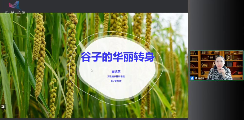 2023年5月20日,由中国作物学会主办、中国农业科学院作物科学研究所承办的第四期“作物科学云沙龙”在线上举办。谷子研究所崔纪菡副研究员应邀参加此次活动,以《谷子的华丽转身》为题向大家讲述了谷子的故事。