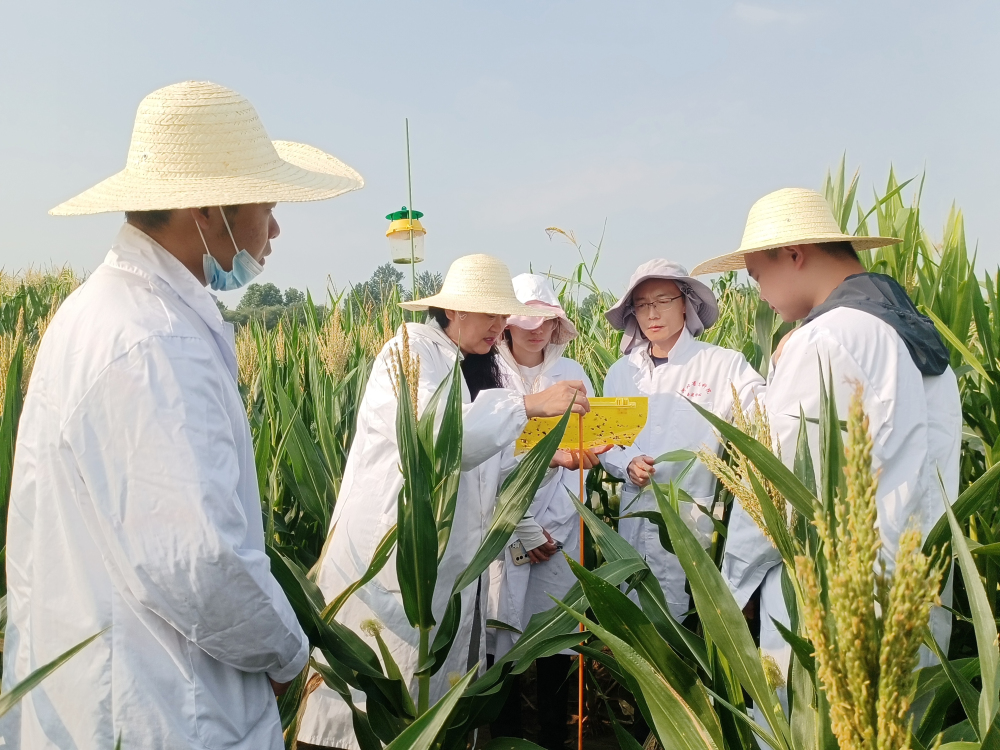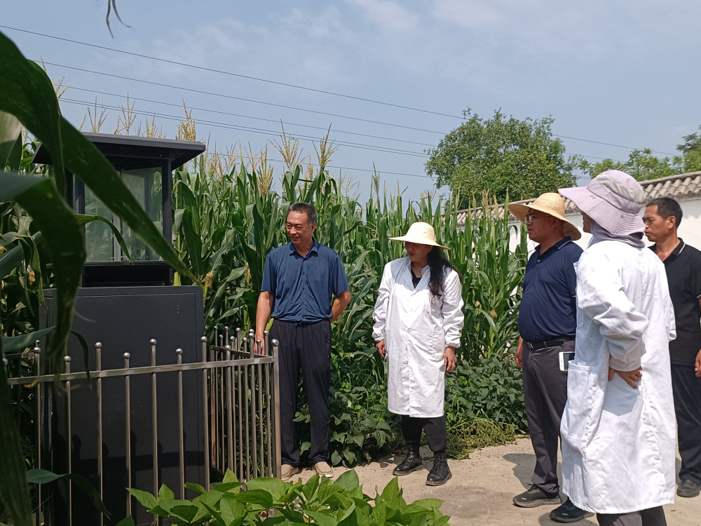 8月16日,国家玉米产业技术体系外来物种入侵防控岗位专家李志红教授一行4人来石家庄综合试验站调研外来入侵病虫害发生情况,指导当地玉米重大病虫防控工作。李志红一行考察了我院粮油作物研究所堤上试验站玉米试验田、赵县示范县宝丰源家庭农场(玉米密植高产百亩示范方)、赵县大豆玉米带状复合种植示范田;调查了利用性诱捕器和粘虫板等对草地贪夜蛾、桃蛀螟等害虫的种群监测情况,以及玉米、大豆病害发生情况。李志红教授指出,当前空气湿度大,温度较高,极易引起玉米南方锈病、弯孢叶斑病等病害的爆发,应注意提前预防。