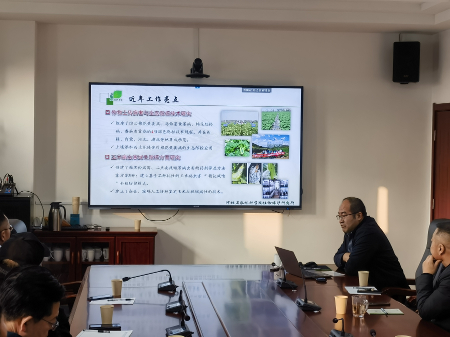 2023年2月15日,新疆农科院植保所所长郭文超研究员、总支书记李广阔研究员等一行六人到我院植保所联合开展“新征程心使命 新担当新作为”主题党日活动并进行工作座谈交流。中国农科院研究生院原党委副书记、副院长陈万权研究员,植保所党总支书记、所长马平,副所长陈书龙、蔡春锡、郭庆港及有关专家参加了座谈。