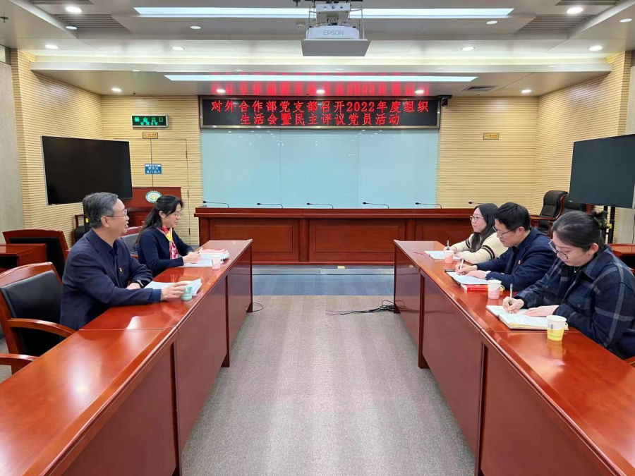 2023年2月27日下午,对外合作部党支部召开2022年度组织生活会暨民主评议党员会议。会议由支部书记张梅申同志主持,原党组成员、副院长孙世刚及对外合作部全体党员干部参加了会议。