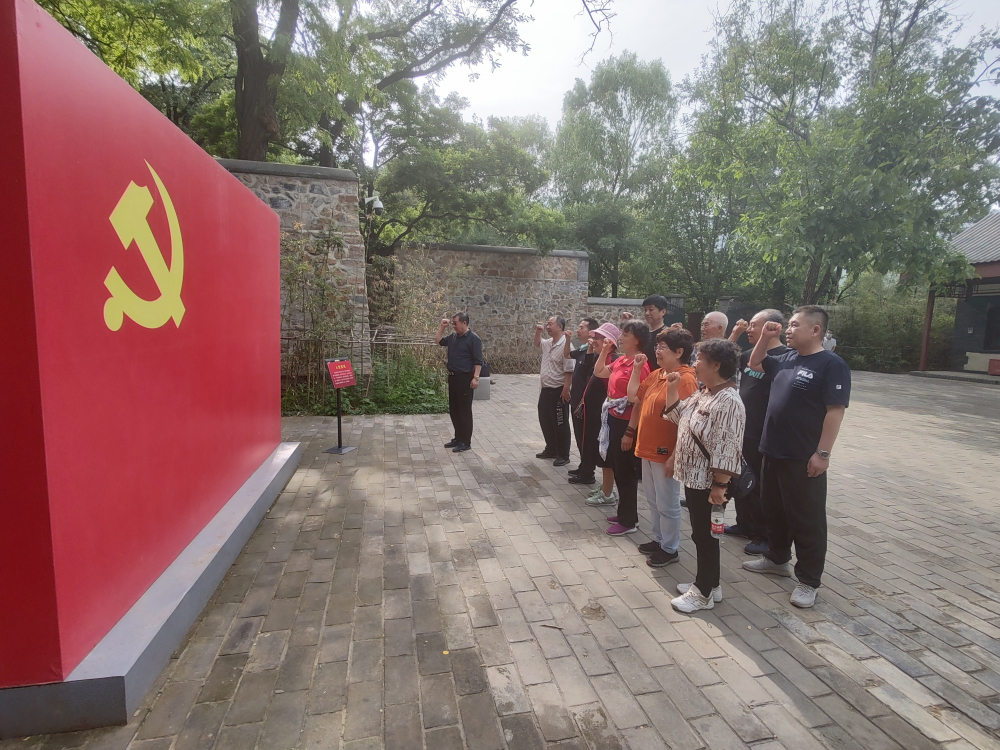 在中共中央香山驻地旧址,大家参观毛泽东主席等中央领导简约朴素的办公生活场所后无不肃然起敬,心潮澎湃,热血沸腾。支部书记王建锋带领全体党员,面向鲜红的党旗,举起右拳,重温了入党誓词。党员们铿锵有力的誓言,表达了对党的无限忠诚和无比热爱,表达了退休不褪色和为共产主义事业奋斗终生的坚定决心!