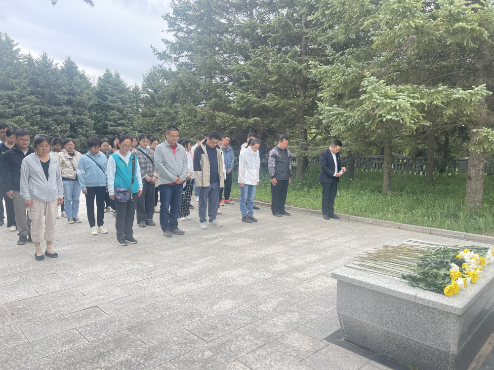 在苏蒙烈士陵园,跟随讲解员的讲解,党员了解到苏蒙烈士陵园是为纪念抗日战争中在此牺牲的苏蒙联军烈士而建。1945年8月19日,苏蒙抗日联军与日军在黑风口一带展开激烈战斗,在此次战斗中,苏蒙联军充分发扬了国际主义精神和顽强拼搏的战斗作风,为中国人民的解放事业做出了卓越贡献,有60名苏蒙战士献出了宝贵生命。在纪念碑前,全体党员队列整齐举行了庄重肃穆的举行默哀、献花、重温入党誓词活动。大家表示,苏蒙烈士们高尚的国际主义精神,永远鼓舞着我们,激励着我们热爱和平,反对战争,珍惜美好宝贵的幸福生活。