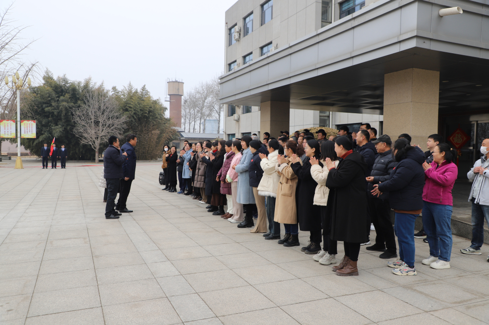 新春伊始,万象更新。2024年2月18日,农历正月初九,石果所全体干部职工齐聚办公楼前广场,举行升旗仪式暨新春团拜会。 鄢新民副所长作新春致辞。回顾过去一年工作,号召全体干部职工做好农业科研创新工作,为围绕“打造省内一流,国内有影响的研究所”总体目标奋力前行。领导班子成员向干部职工致以诚挚的新春祝福和节日问候。伴随着雄壮激昂的国歌声,鲜艳的五星红旗冉冉升起。全体干部职工昂首肃立,庄严面向国旗行注目礼,表达对伟大祖国的深情祝福和崇高敬意。