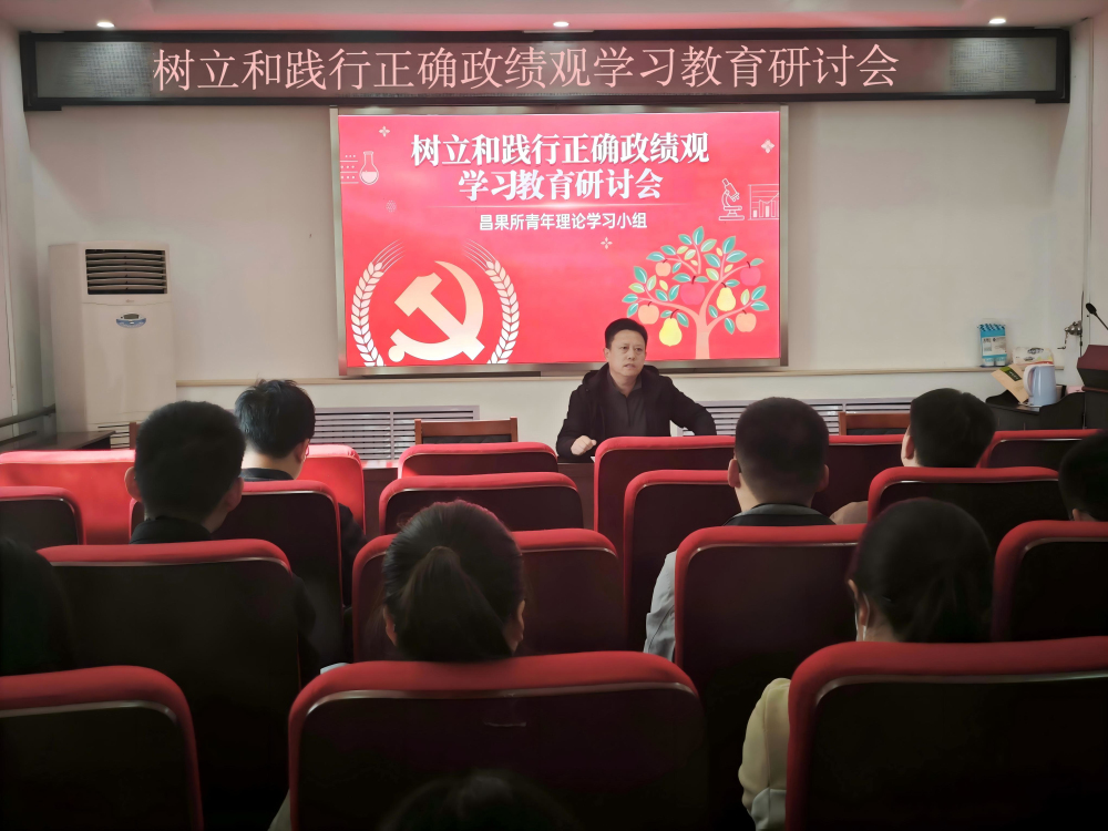 2026年4月1日,昌果所青年理论学习小组召开树立和践行正确政绩观学习教育研讨会,30余名青年干部参加,会议由昌果所青年理论学习小组组长崔凯主持,所党总支书记、所长王广鹏到会指导。