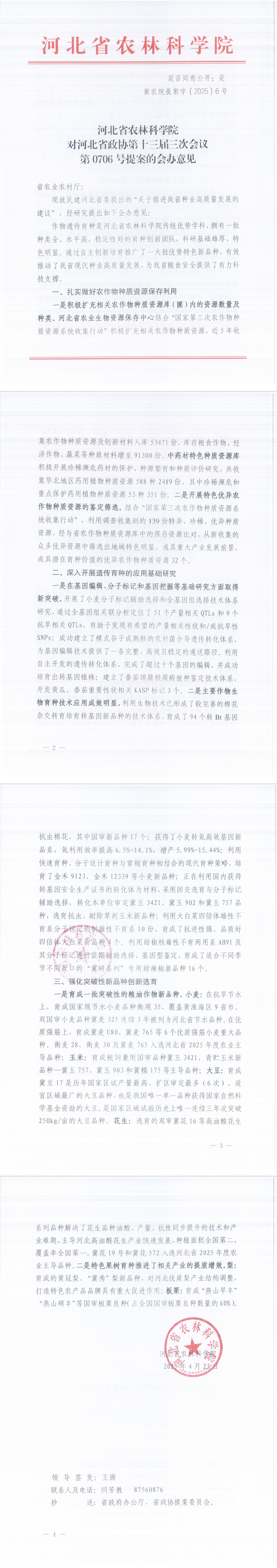 冀农院提案字〔2025〕6号—河北省政协第十三届三次会议第0706号提案的会办意见(关于推进我省种业高质量发展的建议)